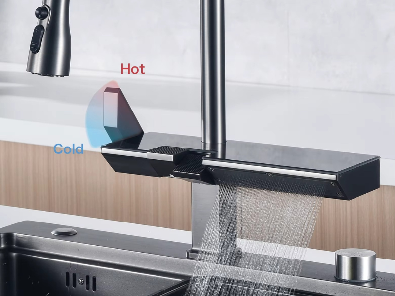 • Modern pull-out faucet design that blends smart technology with elegant aesthetics