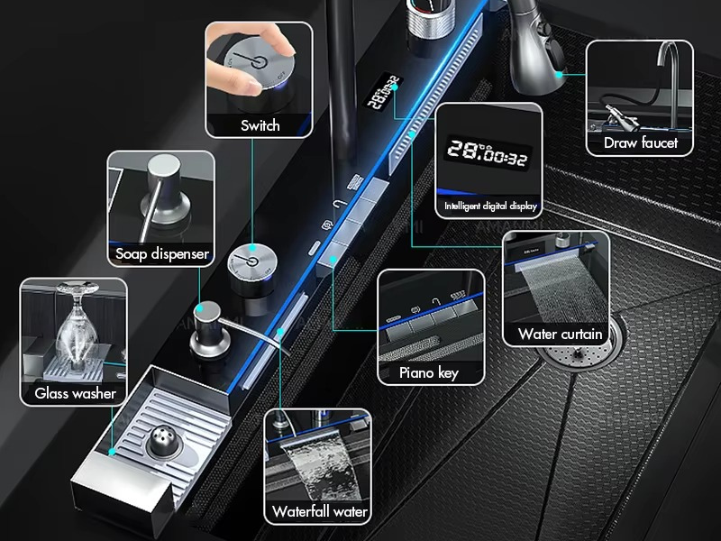 Crafted for contemporary kitchens, this sleek sink combines cutting-edge technology with refined design. Featuring nine integrated functions, it delivers seamless performance, elevated efficiency, and a clean, modern aesthetic.