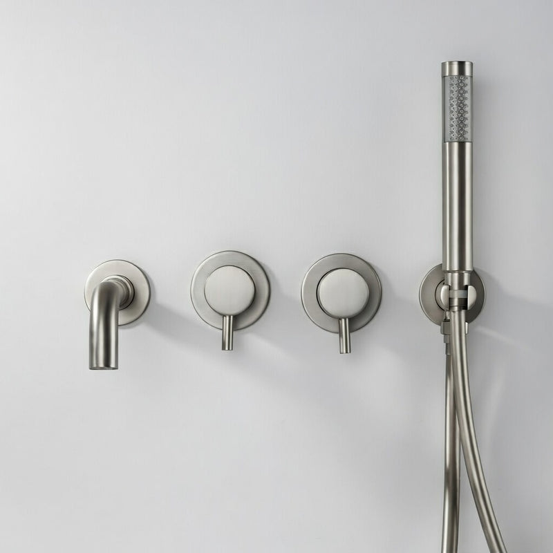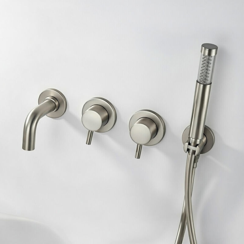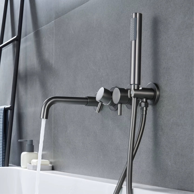 Elevate your bathroom into a personal spa retreat with this elegantly simple, wall-mounted luxury faucet and mixer. Featuring a sleek, modern design, the dual-handle controls allow precise adjustment of hot and cold water for your bathtub or shower.